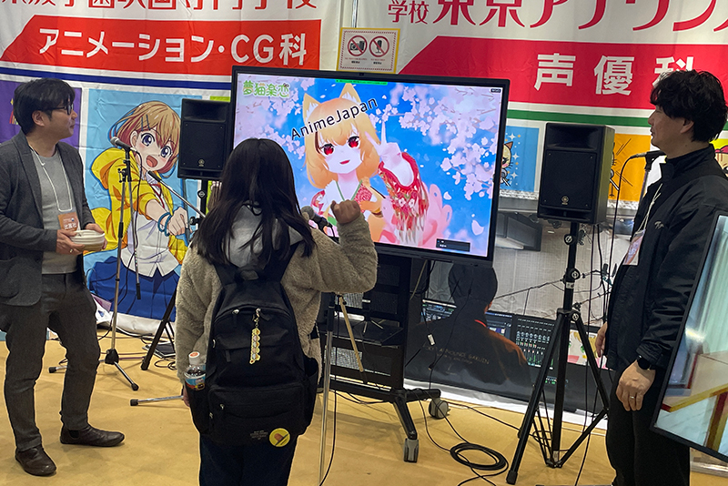 本学園のブースでは、アニメーション・CG科の学生作品の上映、声優科によるアフレコデモンストレーション、配信クリエイター科のバーチャル在校生・夢猫楽恋とのじゃんけんコーナーなどで大いに盛り上がり、多くの来場者に本学園の学校・学科を超えた取り組みを見てもらうことができました!