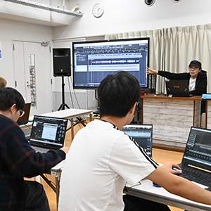 DAWソフトを使い、PC上で音楽素材編集やMIX作業をして「歌ってみた」で使える音源を編集します。音楽プロデューサーとして活躍する講師がDTMの基礎を丁寧にレクチャー。SNSで音楽活動全般をしてみたい方向けの体験授業です。