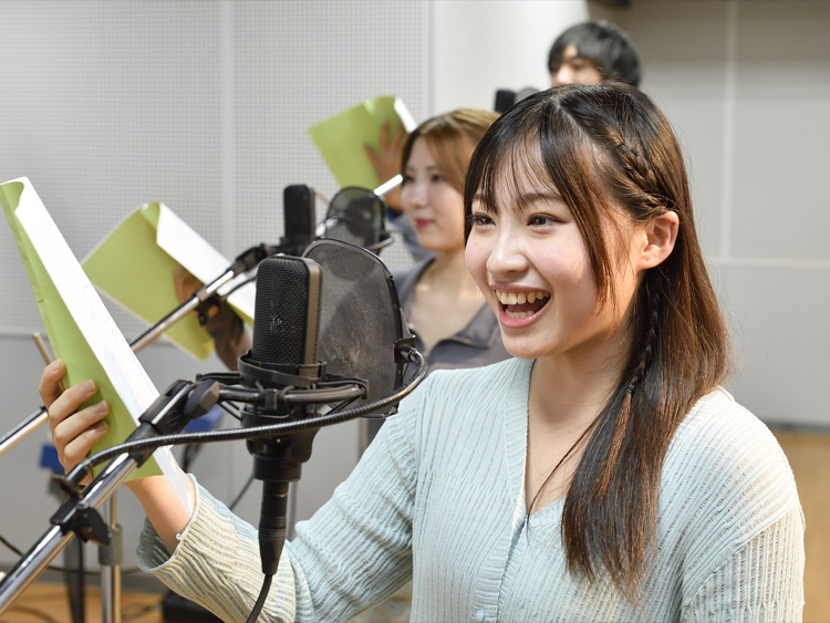 声優科の体験入学では、本作の映像素材を使ったアフレコが体験できます。キャラクターになりきって、声の演技に挑戦しよう