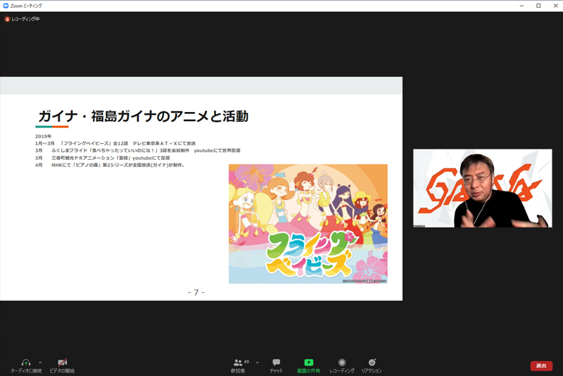 この日の講義では、アニメスタジオを福島につくった経緯、震災復興を目的に取り組んだPRアニメ作品の制作エピソードなど、いつもとは少し違った角度からアニメ制作の現場の話をうかがいました。