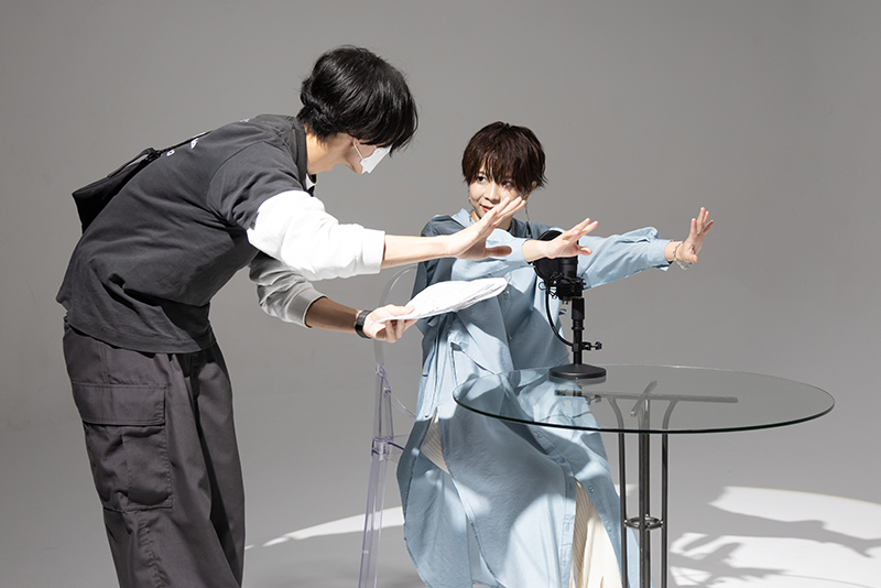 スタジオ撮影当日は、機材のセッティング、撮影・照明・演出まで、一貫してプロモーション映像科の学生たちが行いました。