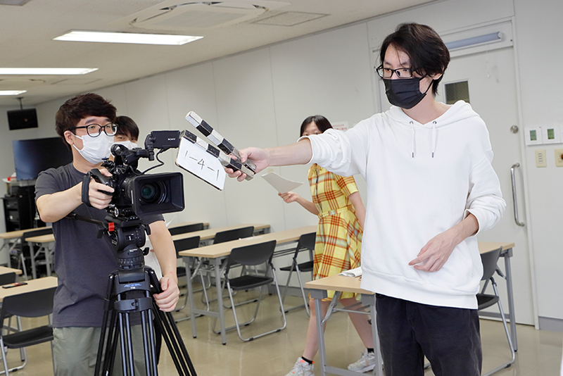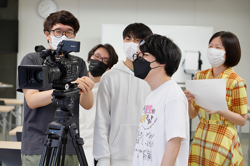9/20(火)~22(木)の3日間、アニメーション・CG科の2年生を対象とした短期集中講座「映像制作基礎」を実施しました。 この授業では、実写映像の制作をとおして、画面の構図やカメラワーク、光の当たり方、映像のつなぎ方など、アニメと実写に共通した“映像の基本ルールと演出理論”を学んでいきます。 実習では、2つの班にわかれて課題台本をもとに、カメラを使って実写撮影、映像編集ソフト・Premiereを使った編集を経て、それぞれ作品を完成させていきます。 ここでは撮影実習の様子をご紹介します。 いつもは作画した絵やCGで映像を動かしているアニメーション・CG科の学生たちにとって、実際にカメラで撮影することで気づけたことも多かった様子。これからの作品制作に生かせるヒントもあったのでは!?