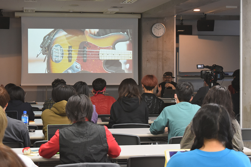 講義ではこれまで手掛けてきた作品を視聴しながら、ディレクターの役割や仕事の進め方、MVやライブ収録の現場エピソード、学生時代の過ごし方、就職活動など、さまざまな経験談を披露してくれました。