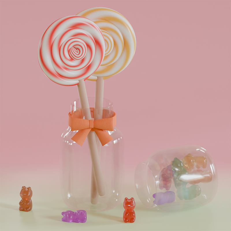 ホワイトデーにちなんで、キャンディーやグミの3CDGに挑戦!基本操作やモデリング、テクスチャ設定などを基礎から学びます。