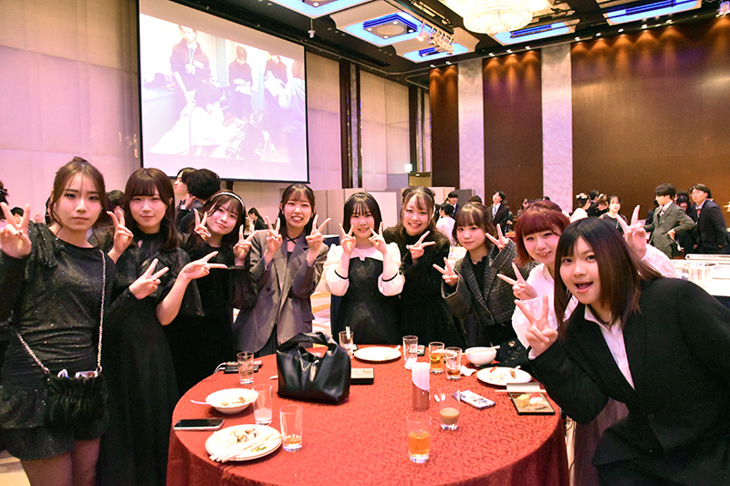 また同日夜には、京王プラザホテルにて卒業祝賀会も実施。思い出写真のスライドショーのほかお楽しみ抽選会も行われ、学生たちは大盛り上がり! 在学中の思い出話に花を咲かせていました。