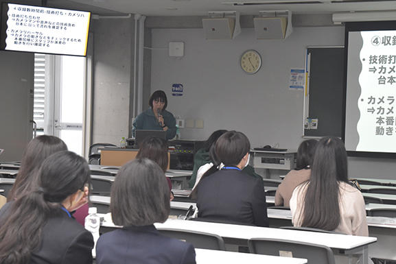 今回は、企画からロケ・編集・収録・オンエアまでの流れを資料などを用いながら解説し、制作スタッフの目線で現場のリアルをお話ししてくれました。