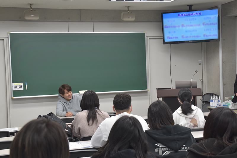 今回の体験入学では、現在の仕事内容について写真を使って紹介。その後、エンタメ業界の就職活動のポイントや、映像制作においてカメラ・照明・音声などを担当する映像技術会社の特徴を、わかりやすく解説してくれました。また、「今までで一番楽しかった現場は?」「東放学園に入学してよかったことは?」など、参加者の質問にも丁寧に答えてくれました。