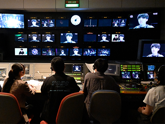 テレビスタジオにて、ディレクターやフロアディレクター、タイムキーパーなど番組制作スタッフの仕事を体験!在校生と一緒にスタジオワークをとおして、番組制作の雰囲気を体感しよう!