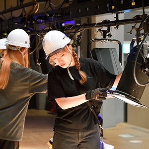 ライブ会場の上部に設置されているたくさんの照明器具は、手作業で調整しているんです!照明の準備作業"吊り込み"を体験!