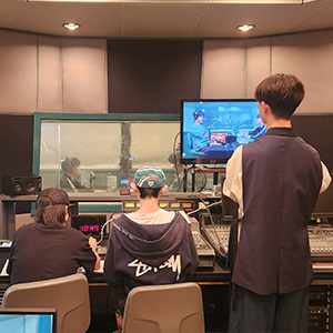 ラジオスタジオでの模擬実習では、ミキサー操作やパーソナリティーへのキュー出しを体験!ラジオディレクターやミキサーなど、ラジオ番組に携わるスタッフの仕事や台本の読み方も解説します。
