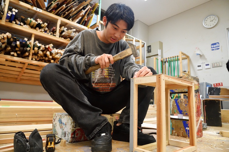 現場で使われている工具を使って大道具制作を体験し、美術の仕事をよりリアルに感じました。在校生の先輩たちとの交流をとおして、入学後の学生生活を具体的にイメージできました。